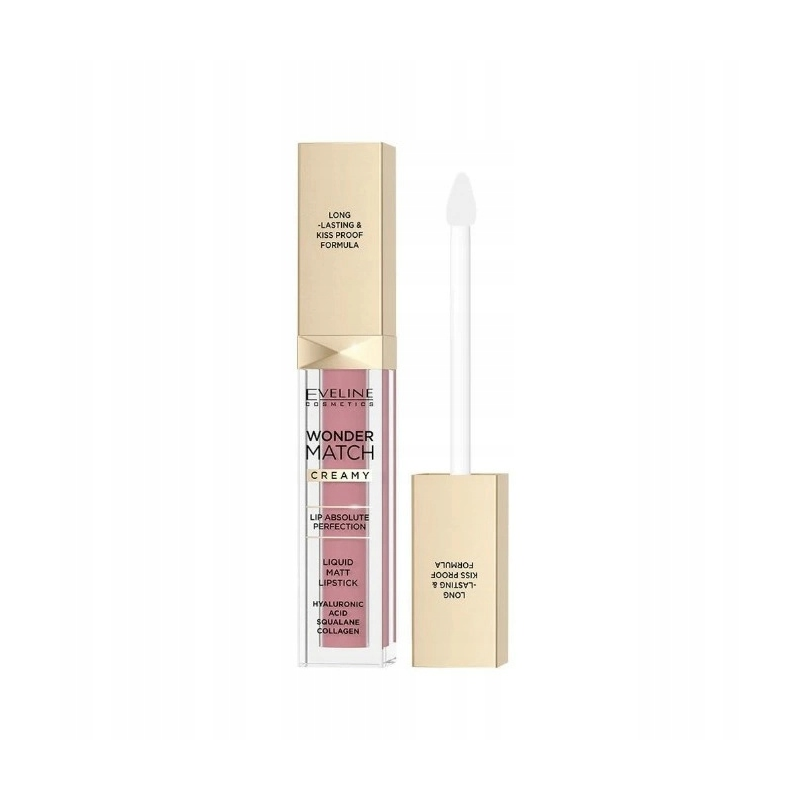 Eveline Wonder Match matowa pomadka w płynie to kosmetyk do makijażu ust, który łączy intensywny pigment z komfortem noszenia. Formuła łatwo i gładko aplikuje się na wargi, zapewniając jednolite, matowe wykończenie bez efektu wysuszenia. Pomadka podkreśla kontur ust i koloryt, tworząc elegancki i trwały makijaż idealny zarówno na co dzień, jak i na wieczorne wyjścia.