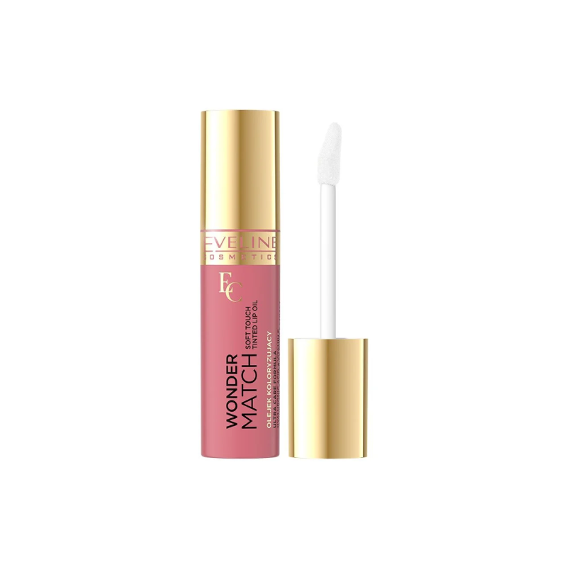 Eveline Wonder Match 03 Strawberry Ice Cream – nawilżający olejek do ust z efektem blasku i delikatnym truskawkowym odcieniem.