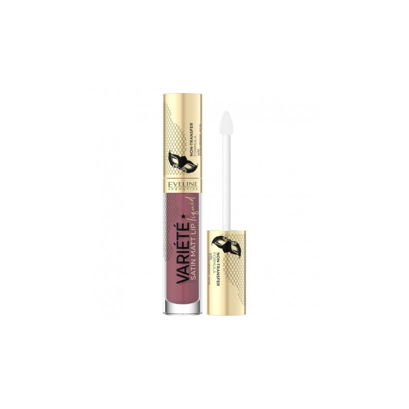 Matowa pomadka w płynie Eveline Variete Satin Matt 03 Berry Shake — trwały kolor i komfort noszenia z nawilżającymi składnikami.