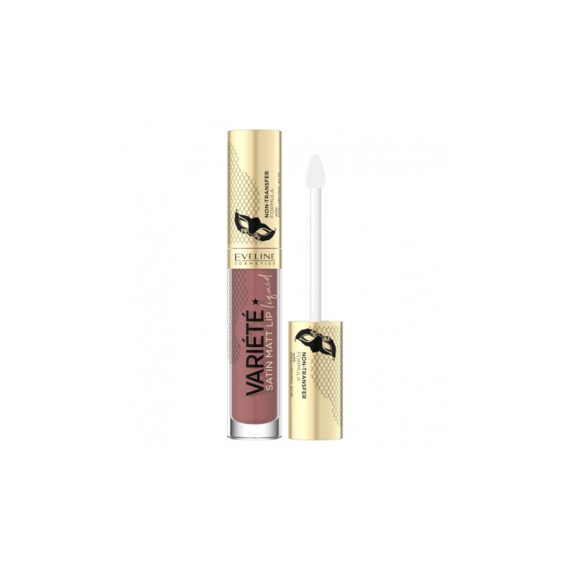 Matowa pomadka w płynie Eveline Variete 04 Toffee — trwały kolor i komfort noszenia z kwasem hialuronowym i witaminą E.
