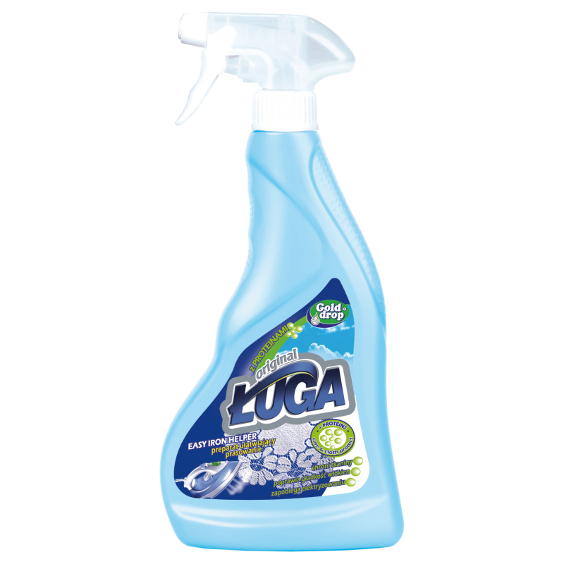 ŁUGA KROCHMAL W SPRAYU 500ML UŁATWIAJĄCY PRASOWANIE praktyczny preparat ułatwiający prasowanie, który sprawia, że tkaniny stają się gładsze.