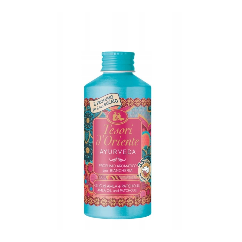 Perfumy do prania Tesori d'Oriente Ayurveda 250 ml to luksusowy włoski produkt, który nadaje tkaninom intensywny, orientalny zapach inspirowany ajurwedą. Połączenie nut cytrusowych i drzewnych tworzy zmysłowy aromat, który utrzymuje się na ubraniach przez długi czas. Produkt nie zawiera zmiękczacza, dzięki czemu jest odpowiedni do wszystkich rodzajów tkanin, w tym mikrofibry.