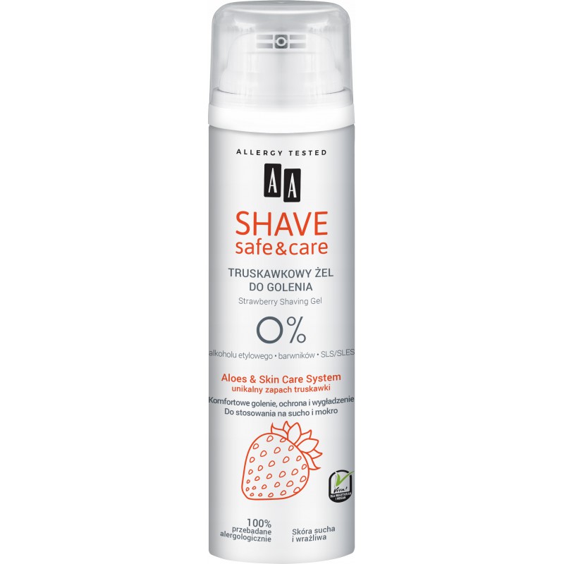 AA SHAVE SAFE CARE ŻEL DO GOLENIA 200ML NAWILŻAJĄCY STRAWBERRY stworzony specjalnie dla wrażliwej i delikatnej skóry kobiet.