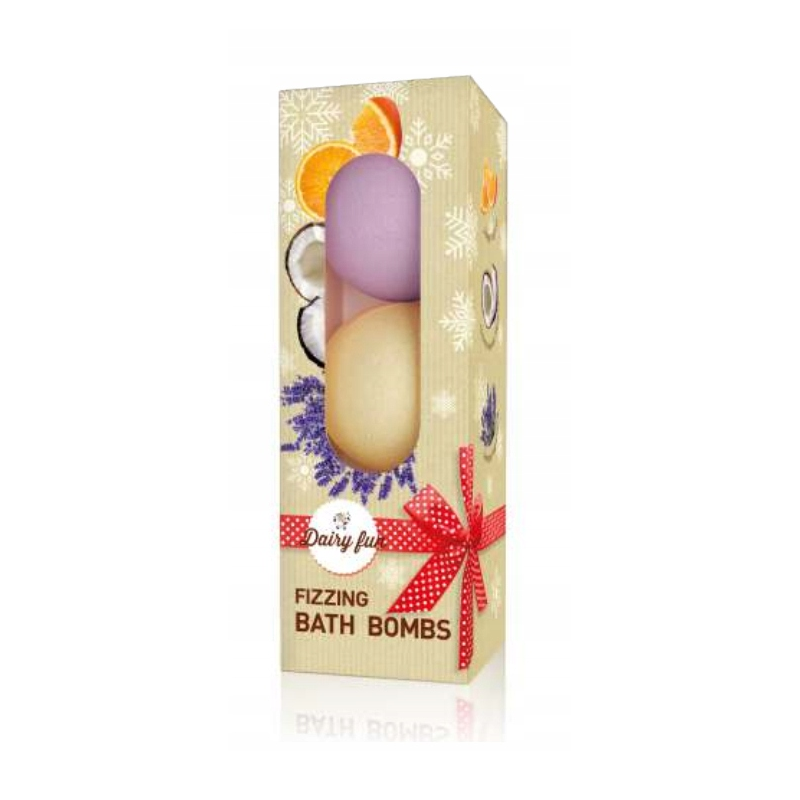 Musujące kule do kąpieli Dairy Fun to zestaw trzech aromatycznych kul, które zamienią każdą kąpiel w relaksujący rytuał. Każda kula waży 100 g i oferuje inny zapach: