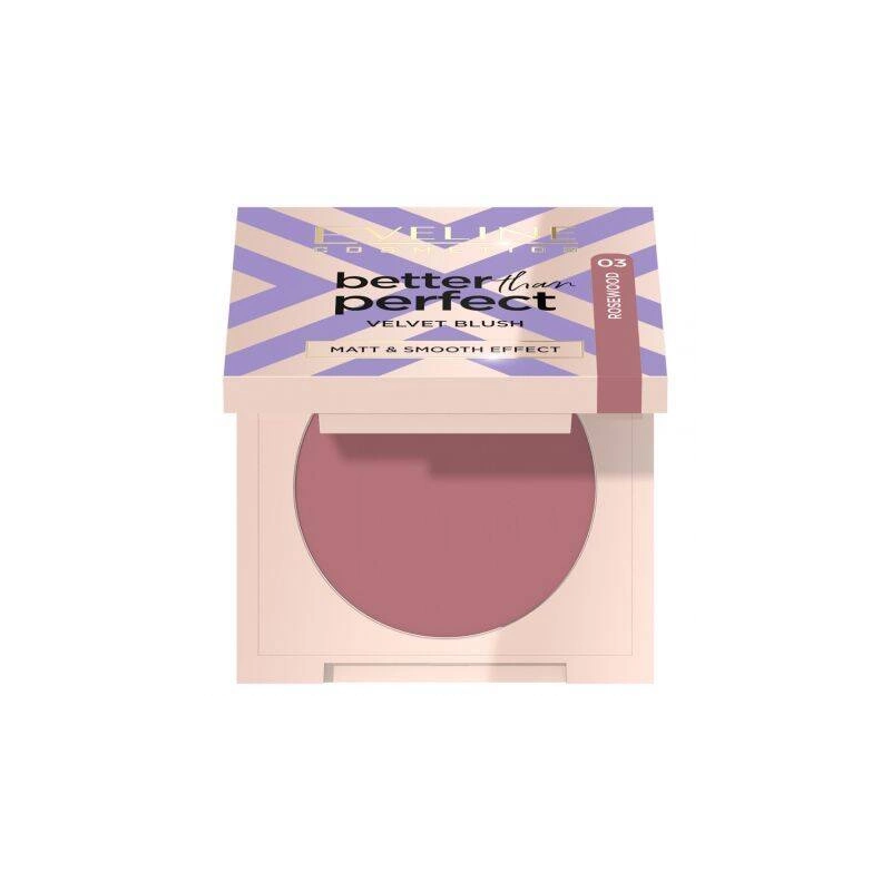 Róż prasowany Eveline Better Than Perfect 03 Rosewood 2,3 g — aksamitna formuła i naturalny, matowy rumieniec.