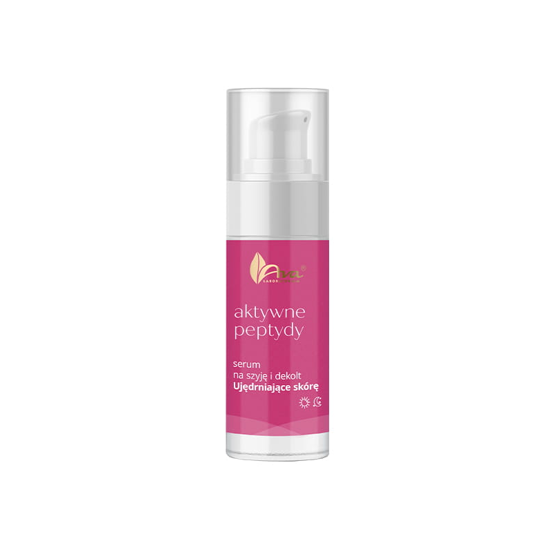 AVA Aktywne Peptydy Serum poprawiające kondycję skóry 30 ml to kremowe serum przeznaczone do pielęgnacji szyi i dekoltu, które wygładza zmarszczki, poprawia jędrność skóry i wspomaga jej regenerację. Formuła serum oparta jest na aktywnych peptydach, ekstrakcie z pieprzu syczuańskiego oraz składnikach odżywczych, które stymulują produkcję kolagenu, elastyny i kwasu hialuronowego. Serum intensywnie nawilża, odżywia i poprawia elastyczność skóry, szybko się wchłania i jest komfortowe w codziennym stosowaniu.