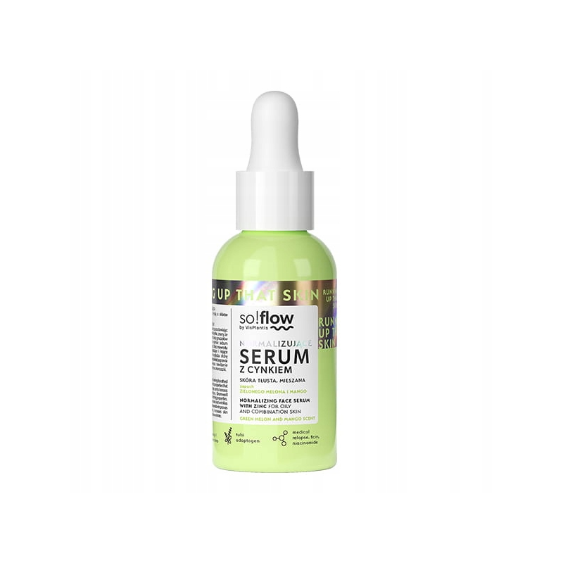 So!Flow normalizujące serum z cynkiem i niacynamidem 30 ml – lekka formuła dla skóry tłustej i mieszanej, która reguluje sebum, redukuje pory, nawilża i poprawia kondycję skóry.