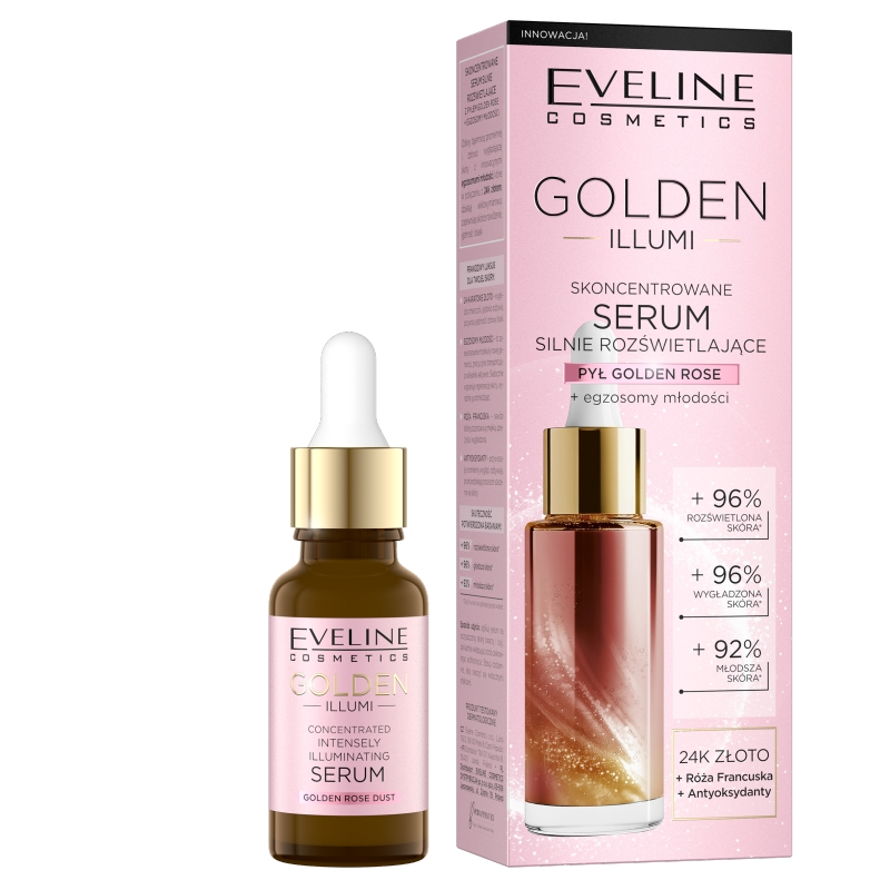 EVELINE GOLDEN ILLUMI ROSE SERUM DO TWARZY 18ML efekt promiennej i pełnej blasku skóry.