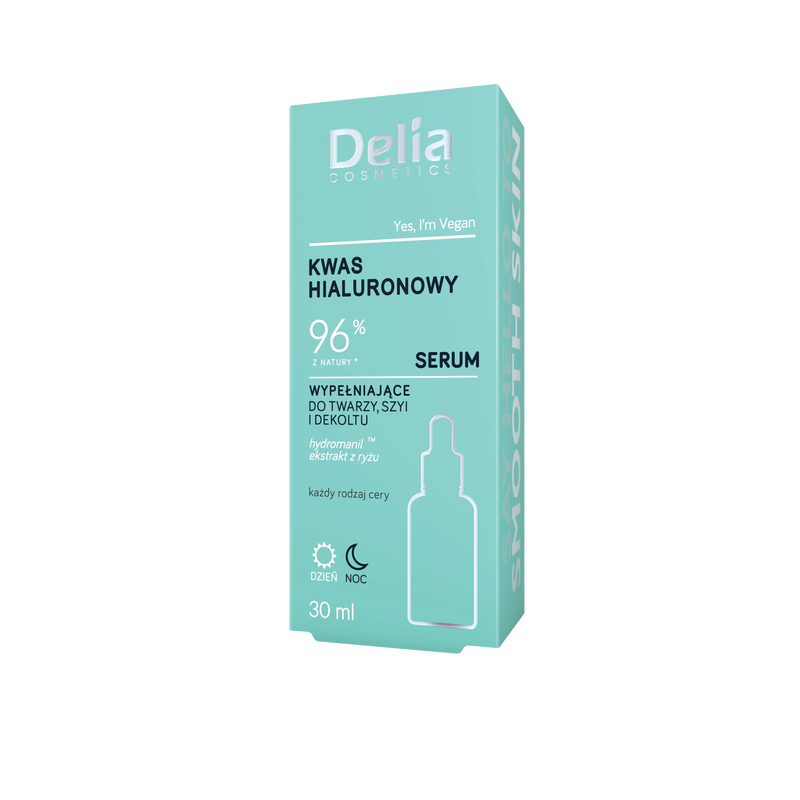 Delia Cosmetics wypełniające serum z kwasem hialuronowym to skuteczny, nawilżający i przeciwstarzeniowy produkt, który poprawia nawodnienie, jędrność i gładkość skóry twarzy, szyi i dekoltu. Skóra wygląda zdrowo, promiennie i bardziej sprężysto, a drobne zmarszczki stają się mniej widoczne.