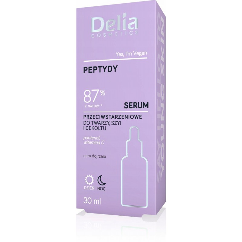 DELIA SERUM DO TWARZY PEPTYDY 87% Z NATURY 30ML zapewnia skórze ujędrnienie.