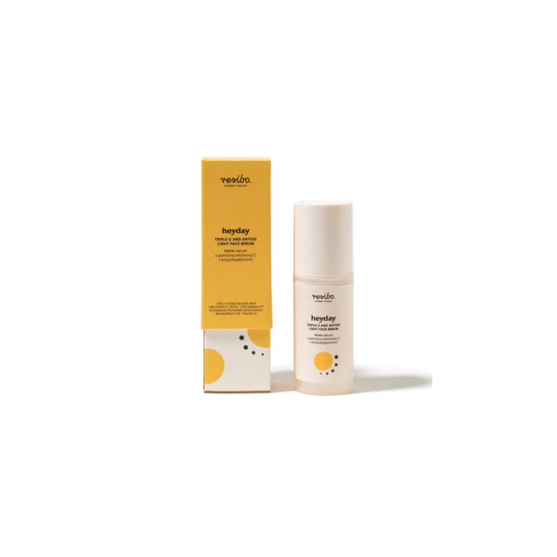 RESIBO HEYDAY LEKKIE SERUM DO TWARZY Z POTRÓJNĄ WITAMINĄ C I ANTYOKSYDANTAMI 30ML do walki z przedwczesnym starzeniem się skóry.