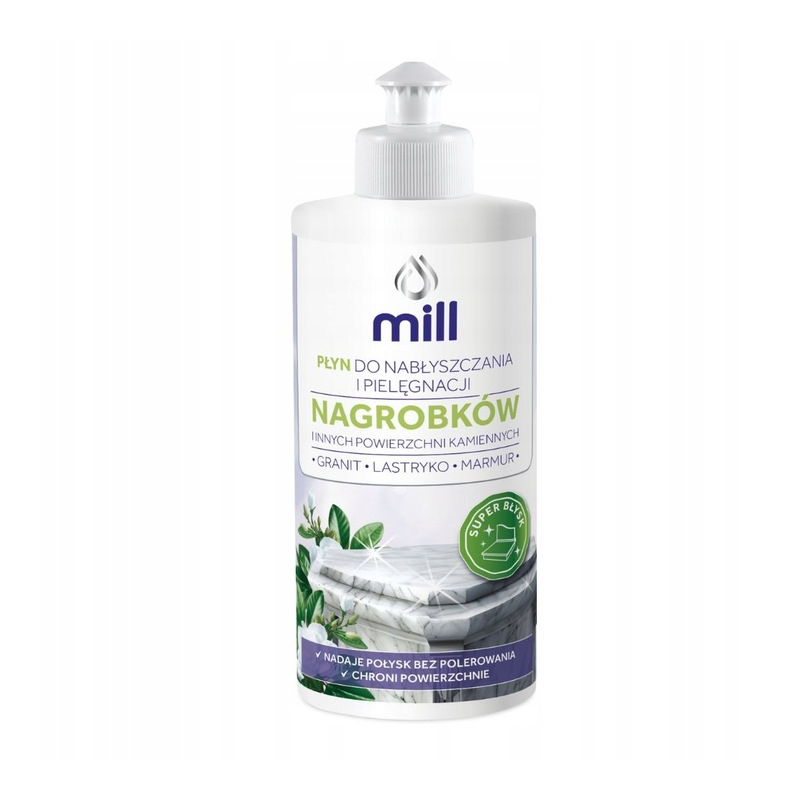 MILL PŁYN DO PIELĘGNACJI NAGROBKÓW I POMNIKÓW 250 ML NABŁYSZCZA lśniący połysk bez potrzeby polerowania.