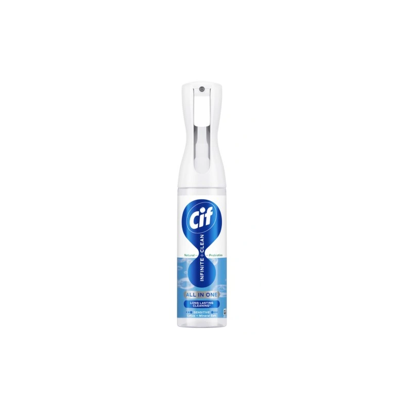 Dzięki poręcznemu opakowaniu w formie sprayu, Cif Infinite+Clean Sensitive Lotus & Mineral Salt jest łatwy i wygodny w aplikacji – równomiernie rozprowadza się na powierzchni, zapewniając szybkie i efektywne działanie. Jego delikatny zapach inspirowany kwiatem lotosu i solą mineralną sprawia, że codzienne porządki stają się bardziej przyjemne.