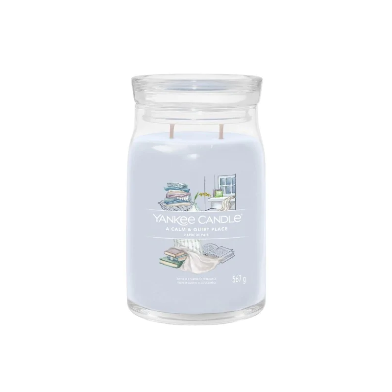YANKEE CANDLE SIGNATURE ŚWIECA 567G A CALM & QUIET PLACE niezwykle zrównoważony zapach, złożony z pozostających w idealnej harmonii delikatnego jaśminu, ciepłego piżma i eterycznej paczuli.