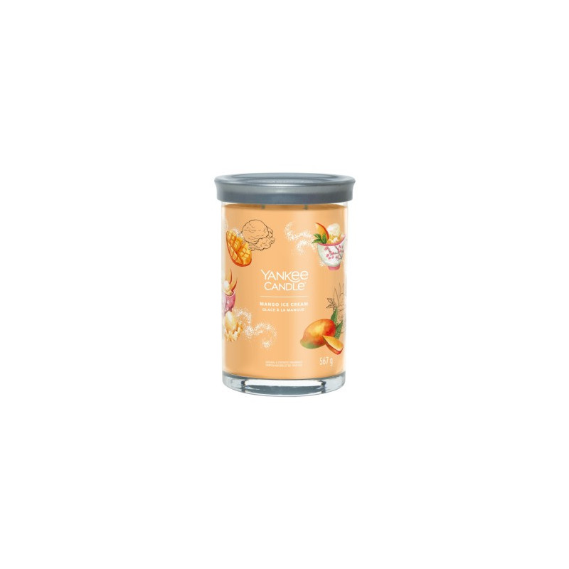 YANKEE CANDLE SIGNATURE ŚWIECA TUMBLER 567G MANGO ICE CREAM orzeźwiający zapach soczystego sorbetu z mango, połączonego z nutą wanilii i ananasa.