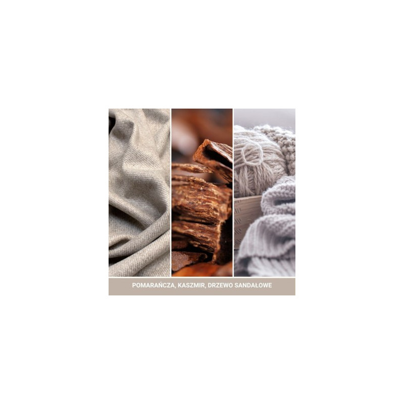 YANKEE CANDLE SIGNATURE ŚWIECA 368G WARM CASHMERE nuty drzewa sandałowego i egzotycznej paczuli.