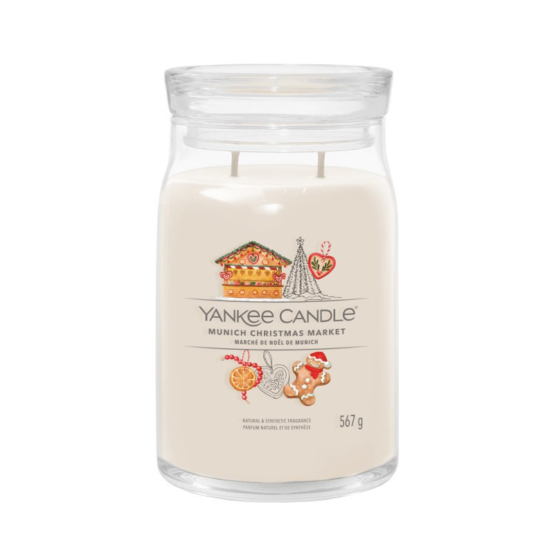 YANKEE CANDLE SIGNATURE ŚWIECA 567G MUNICH CHRISTMAS MARKET kusz się zapachem słodkich ciasteczek z nutami pomarańczy, anyżu gwiazdkowatego i gorzkiej czekolady.