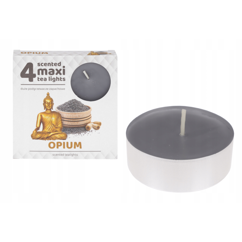 Aromatyczna świeca tealight Opium o głębokim zapachu, idealna do relaksu, dekoracji i aromaterapii.