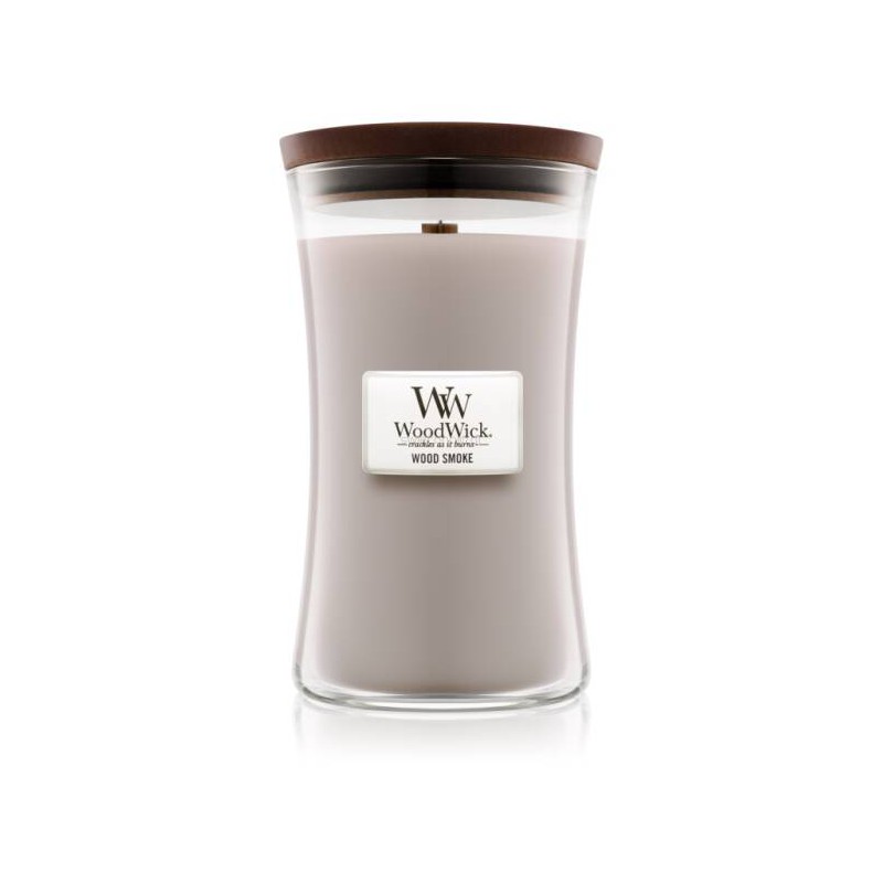 WOODWICK ŚWIECA 610G WOOD SMOKE prawdziwy zapach drewna cedrowego i żarzących się drewienek – nostalgiczny komfort skwierczącego ognia.