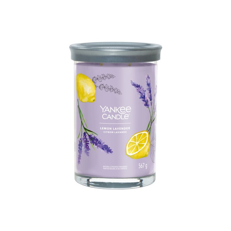 YANKEE CANDLE SIGNATURE ŚWIECA TUMBLER Z DWOMA KNOTAMI 567G LEMON LAVENDER świeży, czysty zapach. Pikantna mieszanka słodkiej cytryny i kwiatów lawendy.