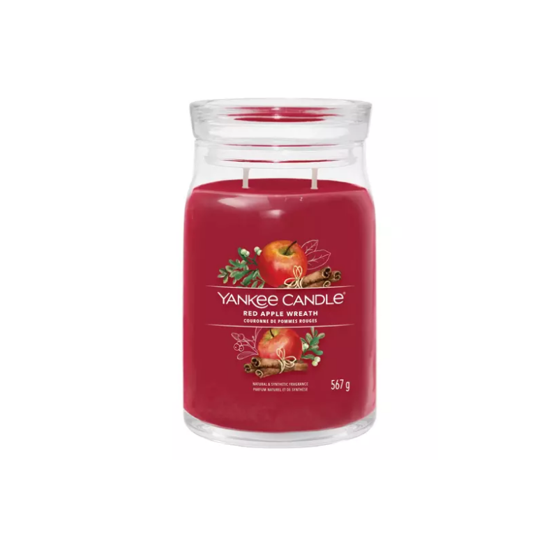 YANKEE CANDLE SIGNATURE ŚWIECA 567G RED APPLE WREATH świąteczny zapach stworzony z aromatu słodkich dojrzałych jabłek, cynamonu i orzechów włoskich. Absolutny bestseller świątecznej sprzedaży. Nie może zabraknąć tego zapachu podczas Świąt.