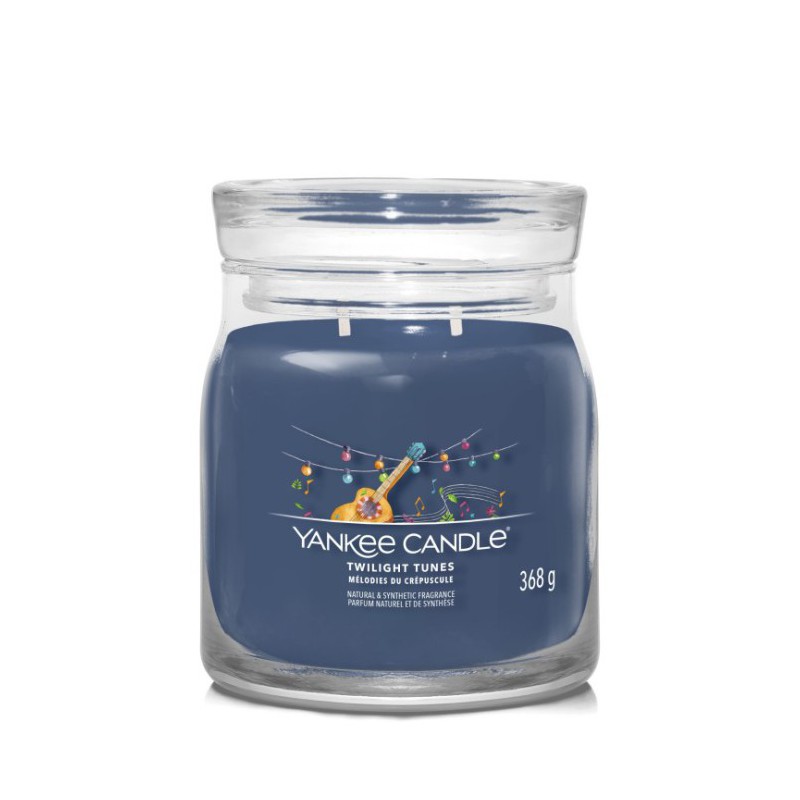 YANKEE CANDLE SIGNATURE ŚWIECA 368G TWILIGHT TUNES Letni wieczór z muzyką w tle. Zapach kardamonu połączony z aromatem drzewa cedrowego i konwalii.