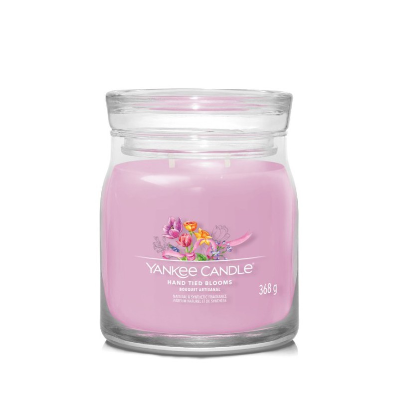 YANKEE CANDLE SIGNATURE ŚWIECA 368G HAND TIED BLOOMS Zapach kolorowych wiosennych kwiatów zebranych w uroczy, sielski bukiet.