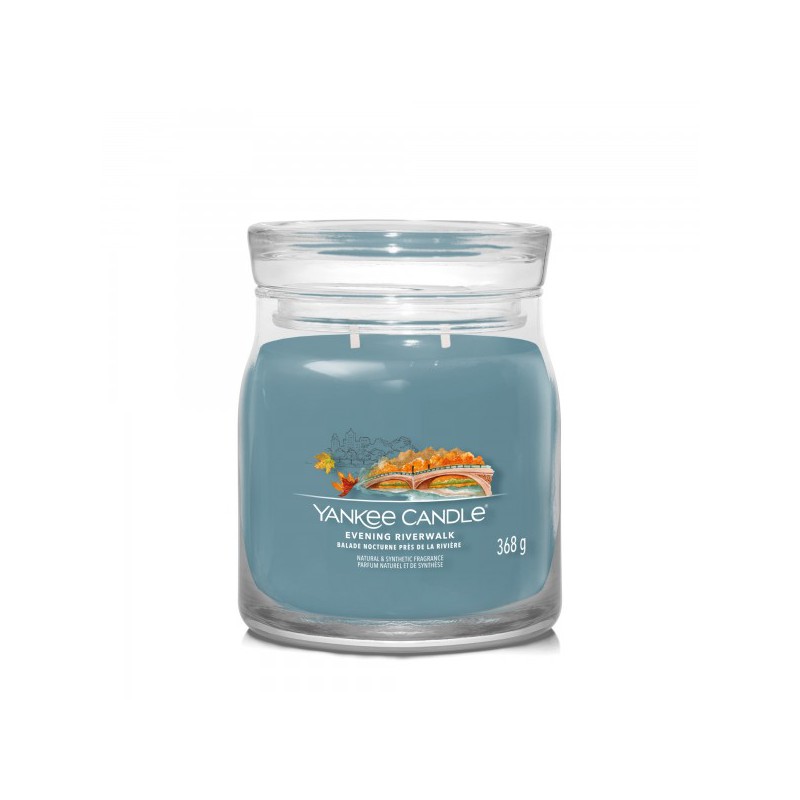 YANKEE CANDLE SIGNATURE ŚWIECA 368G EVENING RIVERWALK Poczuj chłodną jesienną bryzę podczas spaceru o zmierzchu wzdłuż rzeki