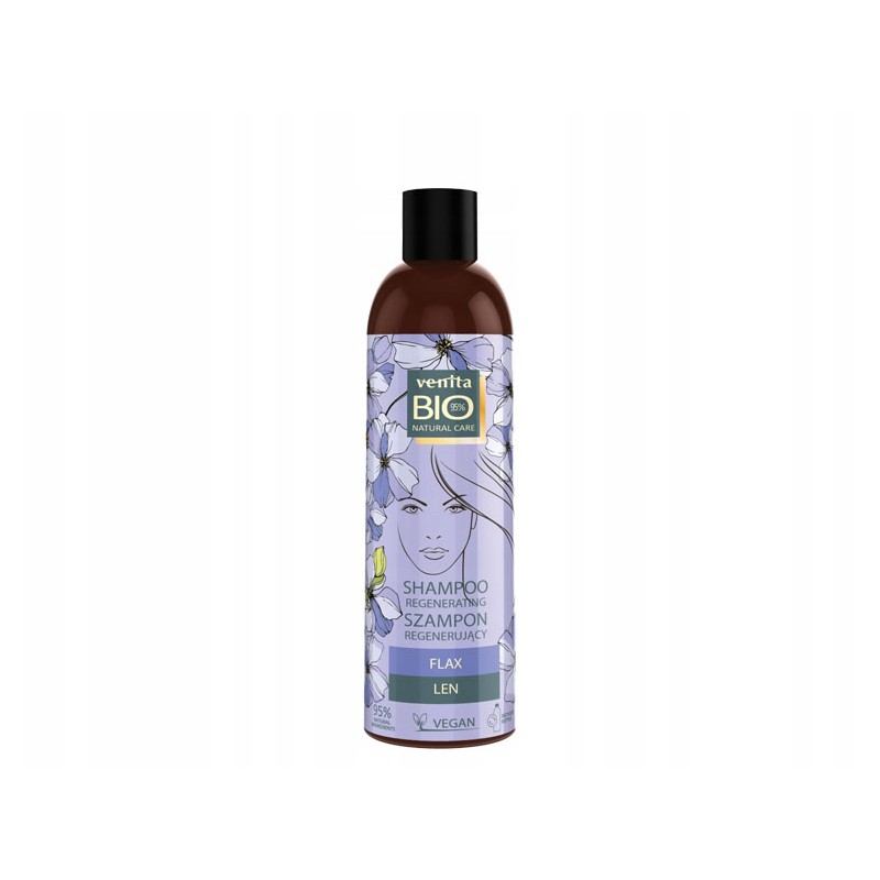 VENITA BIO SZAMPON DO WŁOSÓW REGENERUJĄCY DO PRZETŁUSZCZAJĄCYCH 300ML LEN Redukuje efekt przetłuszczania włosów i skóry głowy.