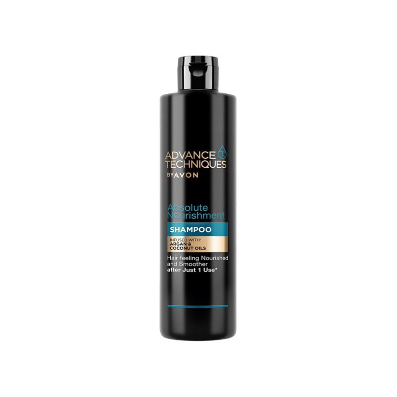 AVON ADVANCE TECHNIQUES SZAMPON DO WŁOSÓW 400ML ODŻYWIAJĄCY OLEJEK ARGANOWY delikatnie myje i odżywia przesuszone włosy, nadając im gładkość.