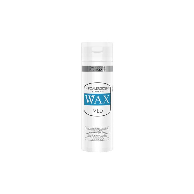 WAX MED SZAMPON DO WŁOSÓW 200ML HIPOALERGICZNY DO SKÓRY GŁOWY ZE SKŁONNOŚCIĄ DO ALERGII nie zawiera składników stosowanych standardowo w kosmetologii, posiadających potencjał uczulający.