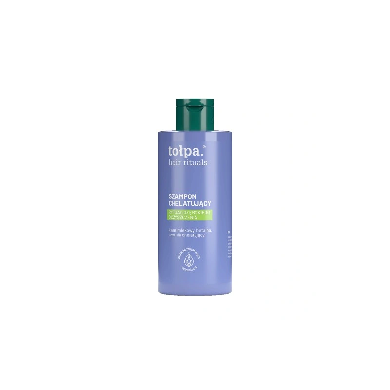Tołpa Hair Rituals Szampon Chelatujący to produkt przeznaczony do głębokiego oczyszczania skóry głowy i włosów. Dzięki zawartości 98% składników pochodzenia naturalnego, skutecznie usuwa zanieczyszczenia, resztki kosmetyków do stylizacji oraz nadmiar sebum, nie naruszając przy tym bariery hydrolipidowej skóry.