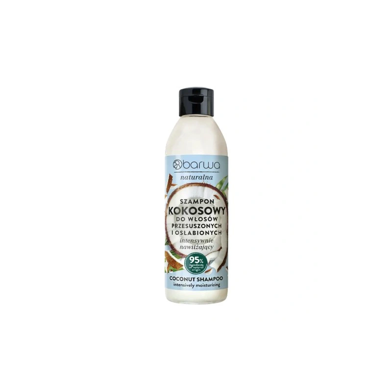 Szampon kokosowy z serii Barwa Naturalna to kosmetyk opracowany z myślą o intensywnym nawilżeniu i regeneracji włosów suchych, matowych oraz pozbawionych blasku. Formuła produktu oparta jest na naturalnym ekstrakcie z kokosa, który znany jest ze swoich właściwości odżywczych i nawilżających.