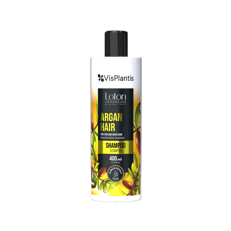 VIS PLANTIS LOTON SZAMPON DO WŁOSÓW OSŁABIONYCH 400ML ARGAN Włosy stają się bardziej elastyczne i pełne blasku.