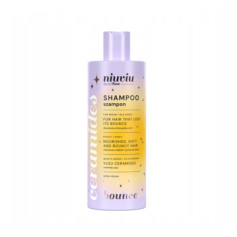 Szampon Niuviu Bounce – Miękkość i Sprężystość bez Puszenia to kosmetyk, który łączy właściwości odżywcze i nawilżające, przeciwdziałając puszeniu się włosów oraz przywracając im miękkość, sprężystość i gładkość. Idealny dla włosów suchych lub pozbawionych elastyczności, które potrzebują delikatnej, ale skutecznej pielęgnacji.
