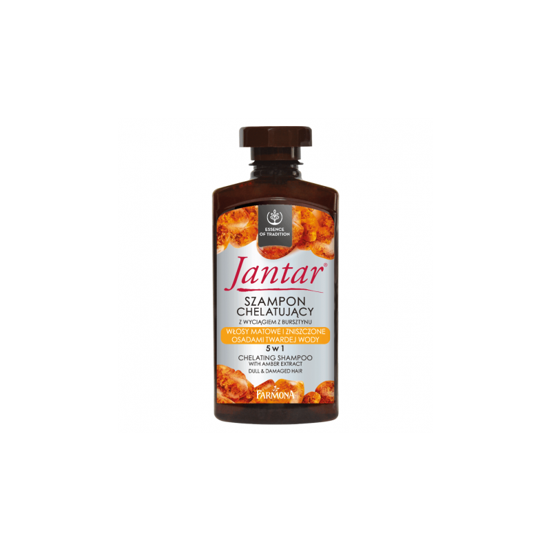 Twarda woda to powszechny problem a skutkiem jej używania podczas mycia włosów są zniszczone i matowe od osadów włosy. Szampon Jantar chelatujący z wyciągiem z bursztynu 5w1 do włosów matowych i zniszczonych został stworzony, aby zniwelować negatywne skutki stosowania twardej wody. Nowoczesna formuła 5w1 chelatuje, czyli pomaga usunąć minerały z twardej wody, chlor oraz inne zanieczyszczenia, nawilża, odżywia, wzmacnia i nabłyszcza włosy.