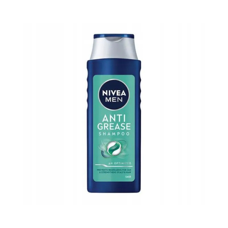 Nivea Men Anti-Grease to szampon opracowany specjalnie dla mężczyzn, którzy zmagają się z problemem przetłuszczających się włosów. Dzięki ekstraktowi z szałwii skutecznie usuwa nadmiar sebum, oczyszcza skórę głowy i zapewnia świeżość aż do 24 godzin. Formuła wzmacnia włosy, nadaje im gęstości i nie obciąża. Produkt ma optymalne pH i jest odpowiedni do codziennego stosowania.