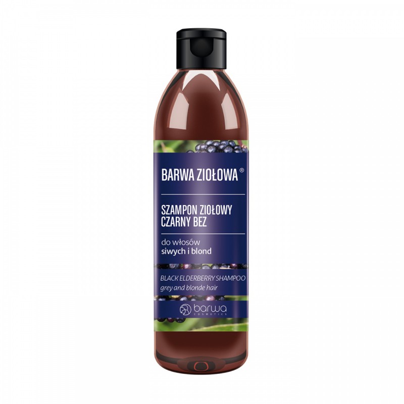Szampon ziołowy czarny bez jest dedykowany włosom siwym i blond. Skutecznie je pielęgnuje, ochładza odcienie blondu, neutralizując niepożądany, żółty odcień włosów.
