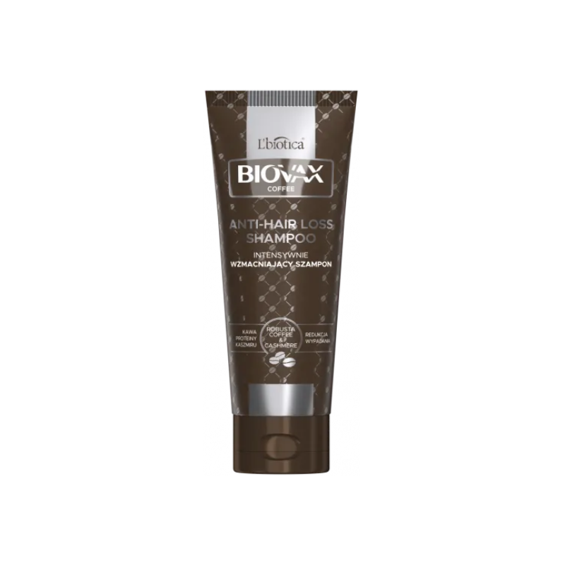 BIOVAX GLAMOUR COFFEE SZAMPON DO WŁOSÓW 200ML chroni przed nadmiernym wypadaniem.
