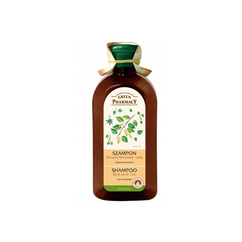 GREEN PHARMACY SZAMPON DO WŁOSÓW 350ML CYNK I DZIEGIEĆ BRZOZOWY działa przeciw drobnoustrojom, łagodzi złuszczanie i nieprzyjemny świąd skóry.