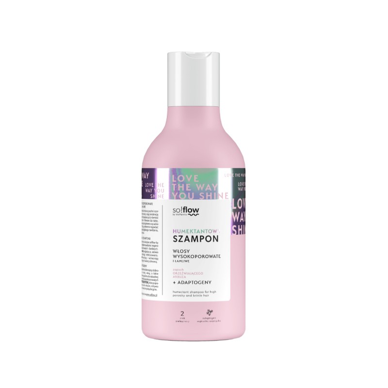 SO! FLOW SZAMPON HUMEKTANTOWY 400ML DO WŁOSÓW WYSOKOPOROWATYCH zapewnia dogłębne nawilżenie i regeneracje włosów wysokoporowatych i łamliwych.