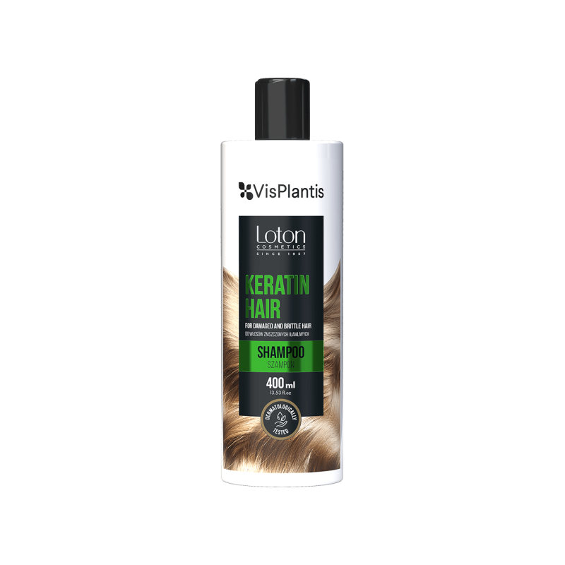 VIS PLANTIS LOTON SZAMPON DO WŁOSÓW ZNISZCZONYCH 400ML KERATYNA Włosy odzyskują naturalną siłę, stają się wygładzone, lśniące i bardziej spreżyste.