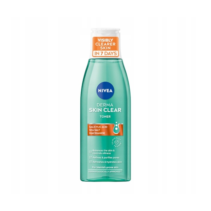 Nivea Derma Skin Clear Tonik Normalizujący to kosmetyk przeznaczony do skóry skłonnej do niedoskonałości. Jego formuła z kwasem salicylowym i niacynamidem skutecznie oczyszcza skórę, redukuje nadmiar sebum i przywraca jej równowagę. Produkt nie zawiera alkoholu etylowego, dzięki czemu jest łagodny i nie przesusza skóry. Regularne stosowanie toniku może poprawić kondycję skóry już w ciągu 7 dni.