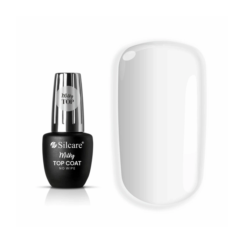 SILCARE TOP DO PAZNOKCI 9ML MILKY NO WIPE delikatna mleczna mgiełka, która łagodzi przejścia kolorów.