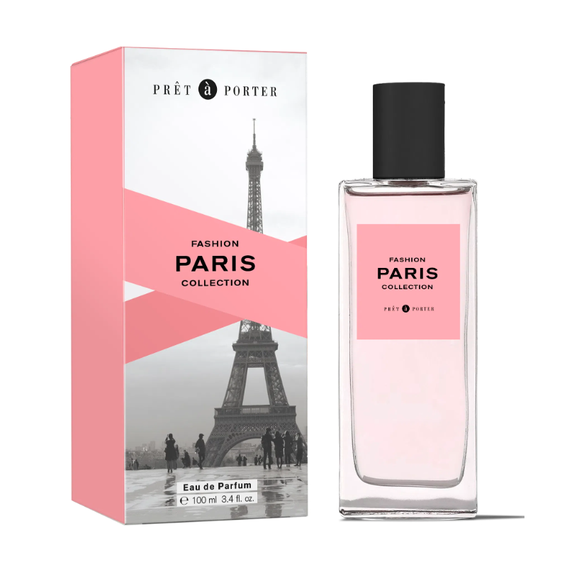 Perfum Prêt à Porter Paris Collection EDP to elegancka i romantyczna kompozycja, inspirowana atmosferą Paryża — miasta mody, słodyczy i wyrafinowania. Świeże i owocowo-kwiatowe nuty w otwarciu przechodzą w słodką, kwiatową esencję z akcentem makaronika, aby zakończyć się ciepłym, drzewnym i piżmowym tłem.