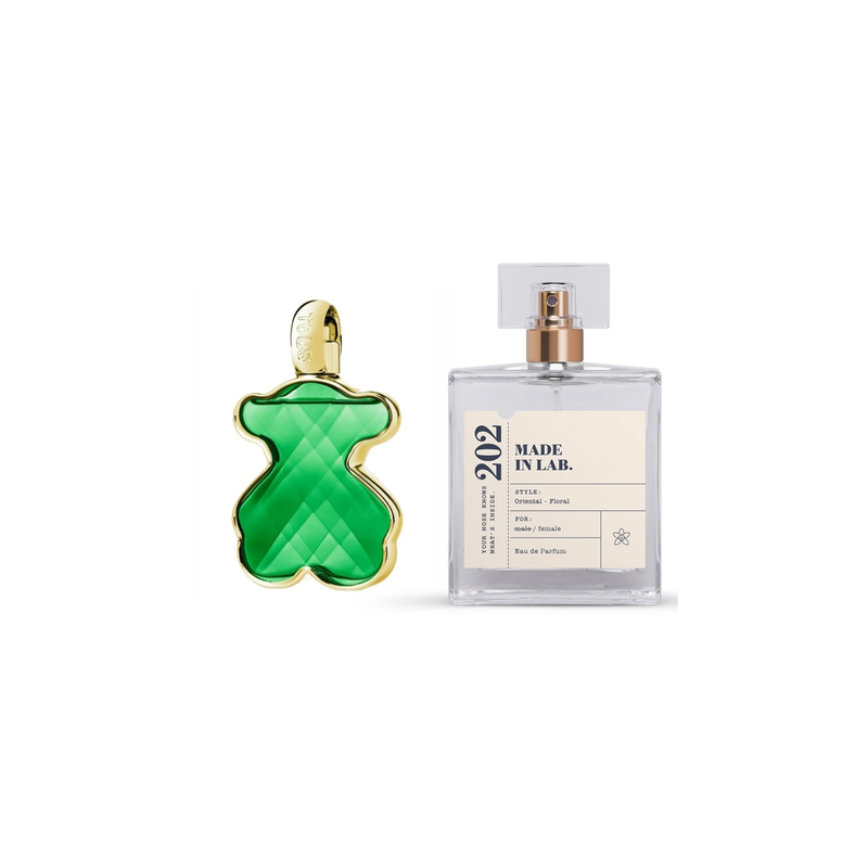 Made in Lab 202 to wyjątkowy damski zapach inspirowany luksusowymi perfumami Tous Love Me The Emerald Elixir, stworzony dla kobiet ceniących elegancję i odrobinę zmysłowej słodyczy.