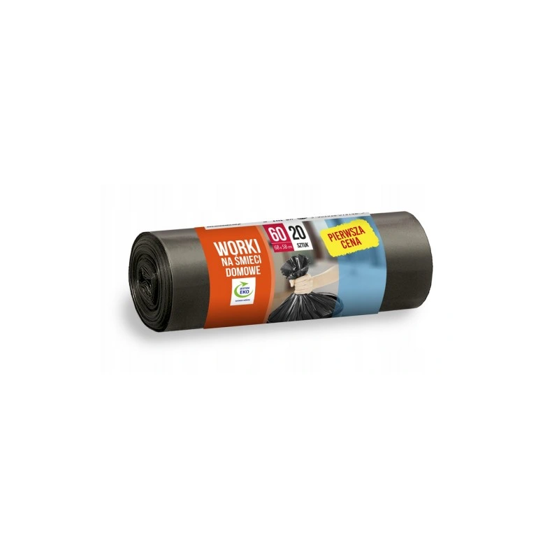 PIERWSZA CENA DOMOWE WORKI NA ŚMIECI DO ODPADÓW ZMIESZANYCH CZARNE 60L 20SZTUK