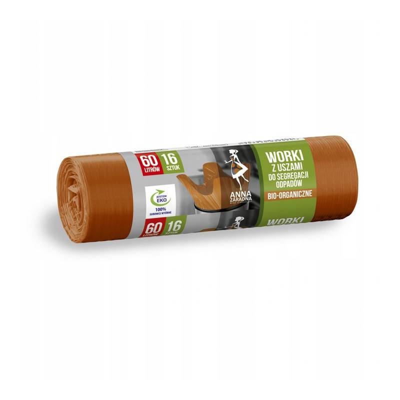 ANNA ZARADNA WORKI NA ŚMIECI Z USZAMI DO SEGREGACJI ODPADÓW BIO 60L 16 SZTUK BRĄZOWE