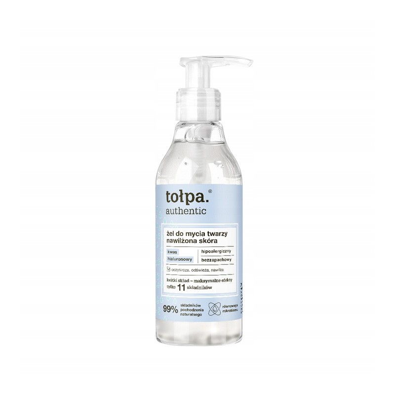 TOŁPA AUTHENTIC ŻEL DO MYCIA TWARZY 195ML NAWILŻONA SKÓRA krok do czystej skóry z dawką nawilżających molekuł kwasu hialuronowego.