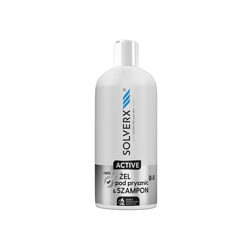 SOLVERX MEN ACITVE ŻEL POD PRYSZNIC 400ML 2W1 o działaniu chłodzącym, dla mężczyzn, przeznaczony do każdego typu skóry.